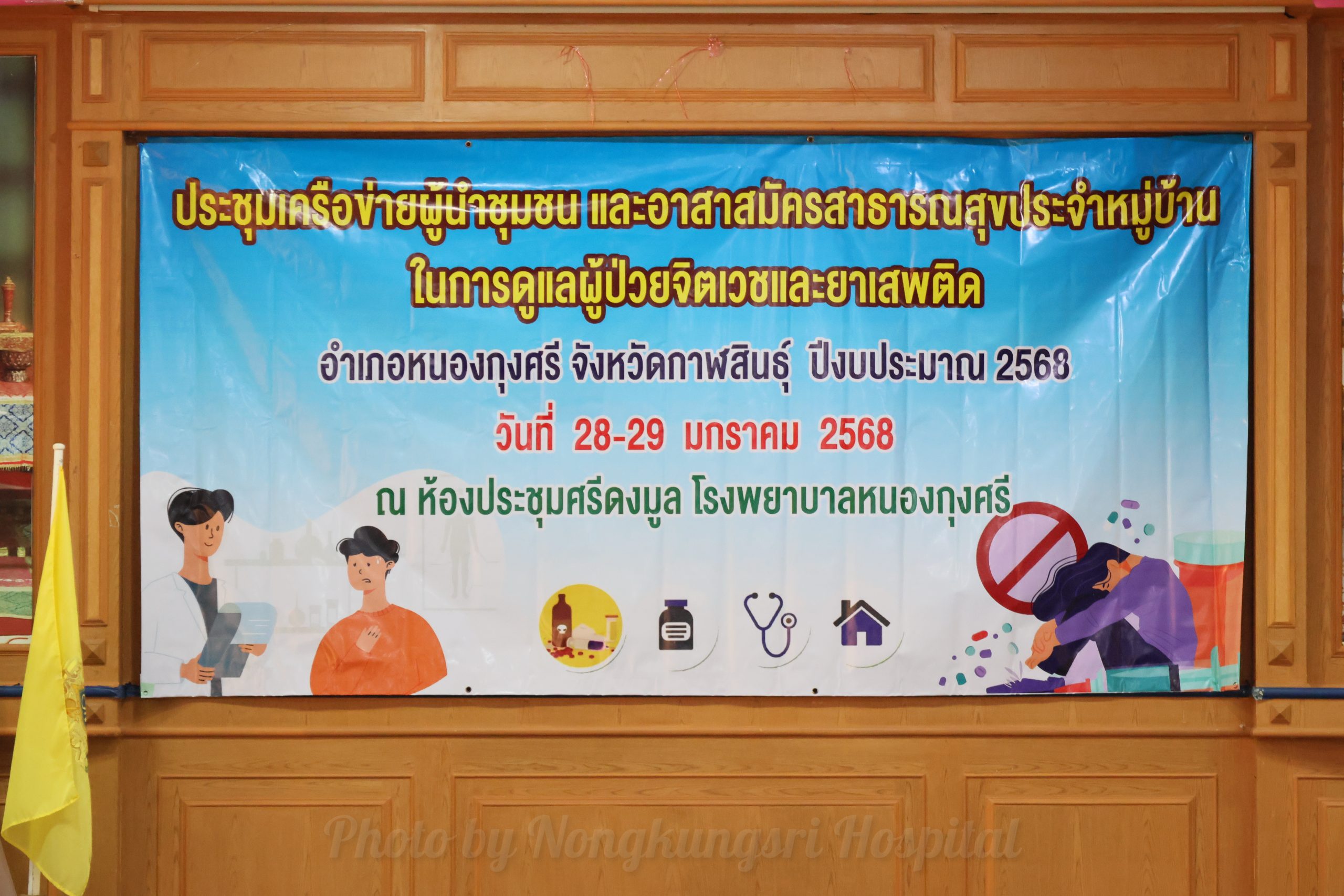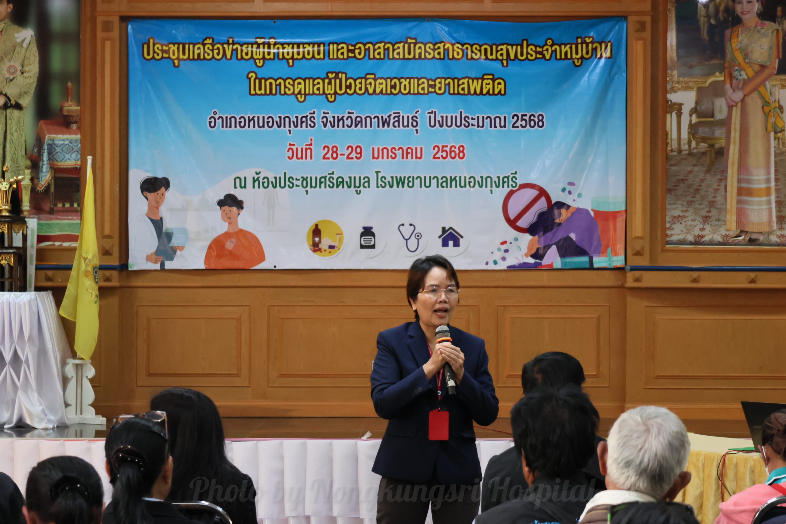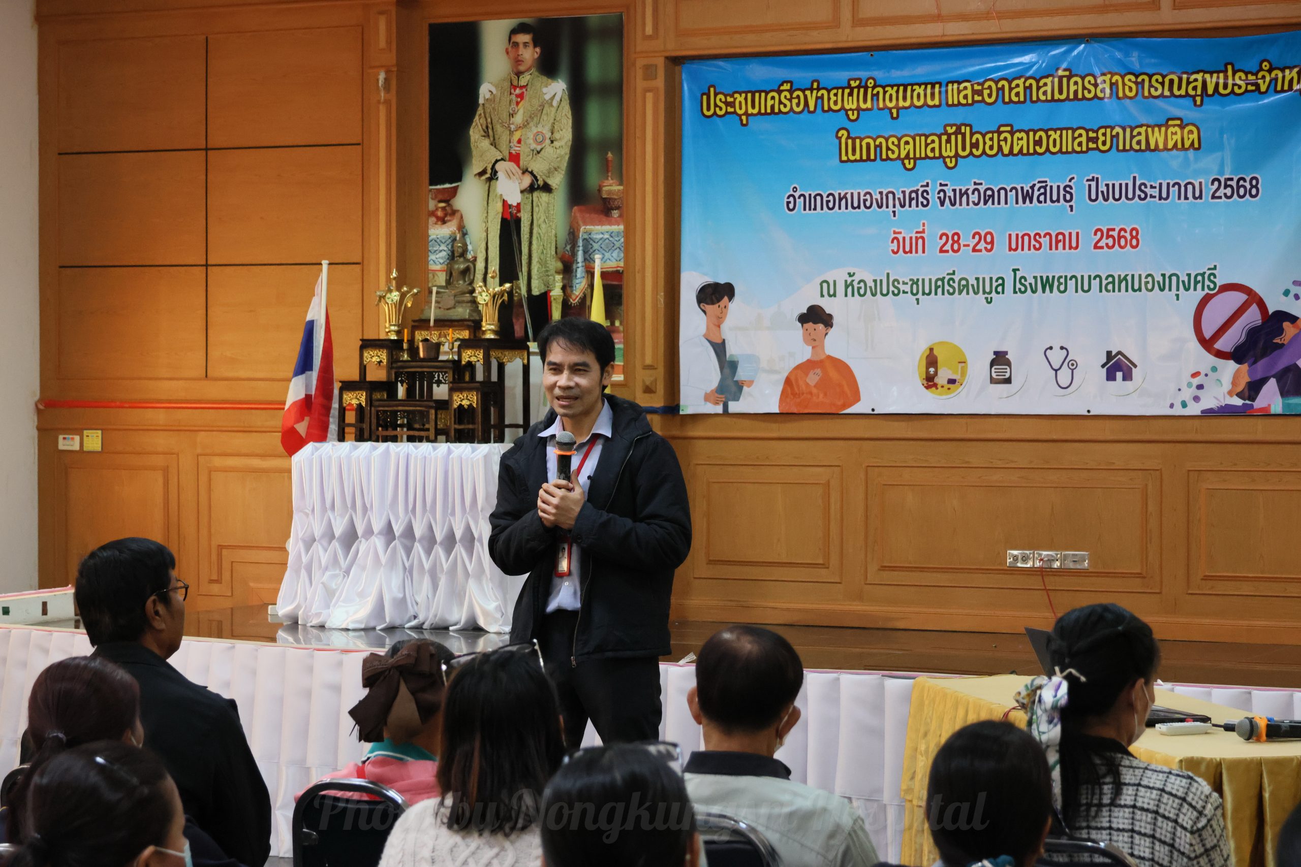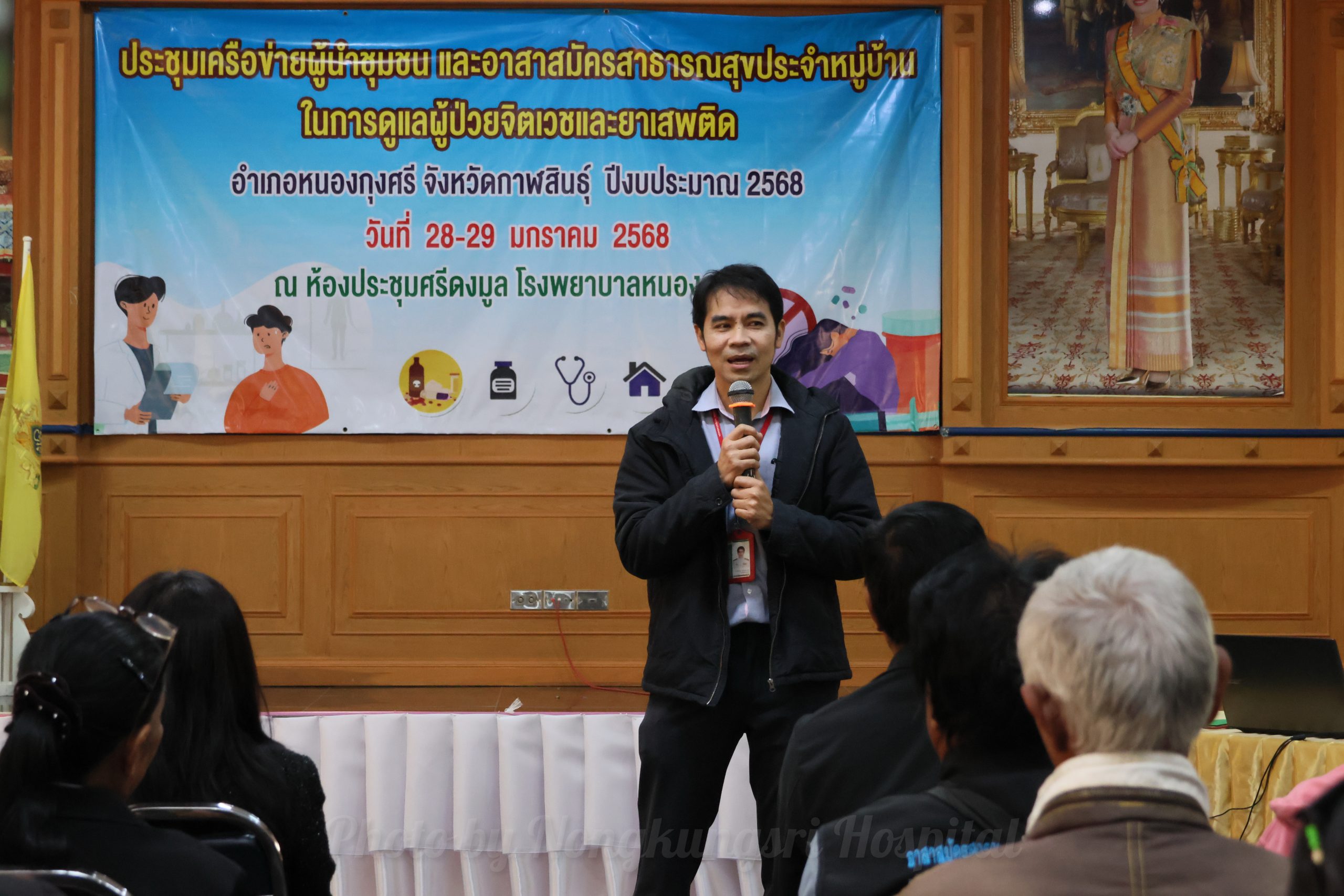 วันที่ 28 - 29 มกราคม 2568 เวลา 08.30 น. นายแพทย์สัญญา สุปัญญาบุตร ผู้อำนวยการโรงพยาบาลหนองกุงศรี เป็นประธานเปิดการประชุม เครือข่ายการทำงานป้องกันและแก้ไขปัญหายาเสพติดอำเภอหนองกุงศรี จัดโดย กลุ่มงานจิตเวชและยาเสพติด ซึ่งดำเนินการทำโครงการพัฒนาเครือข่ายผู้นำชุมชนและอาสาสมัครสาธารณสุขประจำหมู่บ้านในการดูแลผู้ป่วยจิตเวชและยาเสพติด เพื่อคืนคนดีสู่สังคม อำเภอหนองกุงศรี จังหวัดกาฬสินธุ์ ปี 2568 เพื่อพัฒนาเครือข่ายในการป้องกันและแก้ปัญหายาเสพติดในพื้นที่ เสริมสร้างการมีส่วนร่วมในการดูแลผู้ป่วยยาเสพติด ตลอดจน การดูแล เฝ้าระวัง และนำสู่การบำบัดรักษาผู้ป่วยสุขภาพจิตและยาเสพติด ซึ่งได้รับความร่วมมือเป็นอย่างดีจากผู้นำชุมชนและอาสาสมัครสาธารณสุข อำเภอหนองกุงศรี เข้าร่วมประชุมในครั้งนี้ ณ ห้องประชุมศรีดงมูล โรงพยาบาลหนองกุงศรี