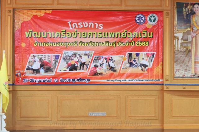 วันที่ 25 กุมภาพันธ์ พ.ศ. 2568 เวลา 08.30 น. นายแพทย์สัญญา สุปัญญาบุตร ผู้อำนวยการโรงพยาบาลหนองกุงศรี เป็นประธานในพิธีเปิดการอบรม "พัฒนาเครือข่ายการแพทย์ฉุกเฉินอำเภอหนองกุงศรี จังหวัดกาฬสินธุ์ ปีงบประมาณ 2568" ซึ่งจัดโดยงานการพยาบาลผู้ป่วยอุบัติเหตุฉุกเฉินและนิติเวช การอบรมครั้งนี้มีวัตถุประสงค์เพื่อเสริมสร้างความรู้ความเข้าใจและทักษะที่จำเป็นแก่บุคลากรเครือข่ายการแพทย์ฉุกเฉินและผู้เกี่ยวข้องเพื่อรับมือกับสถานการณ์ฉุกเฉินได้อย่างมีประสิทธิภาพ ซึ่งการอบรมประกอบด้วยการอภิปรายความรู้เกี่ยวกับกลุ่มโรคฉุกเฉิน การช่วยฟื้นคืนชีพ (CPR) การปฐมพยาบาลเบื้องต้น และการฝึกปฏิบัติในสถานการณ์จำลอง