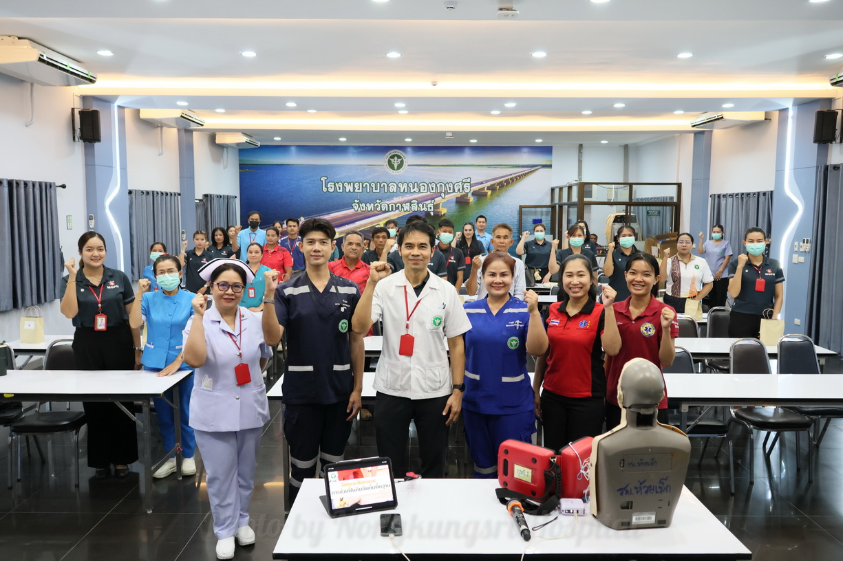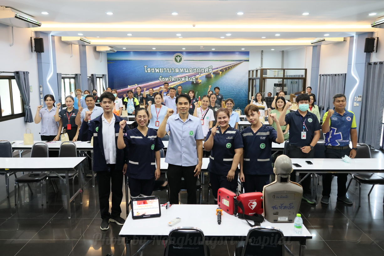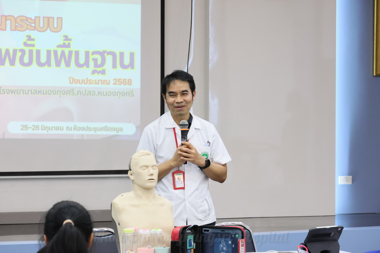 วันที่ 25 มิถุนายน 2568 เวลา 13.00 น. นายแพทย์สัญญา สุปัญญาบุตร ผู้อำนวยการโรงพยาบาลหนองกุงศรี เป็นประธานเปิดโครงการ “พัฒนาระบบปฏิบัติการช่วยฟื้นคืนชีพ (Cardiopulmonary Resuscitation: CPR)” การช่วยชีวิตขั้นพื้นฐาน (Basic Life Support: BLS) ประจำปีงบประมาณ 2568