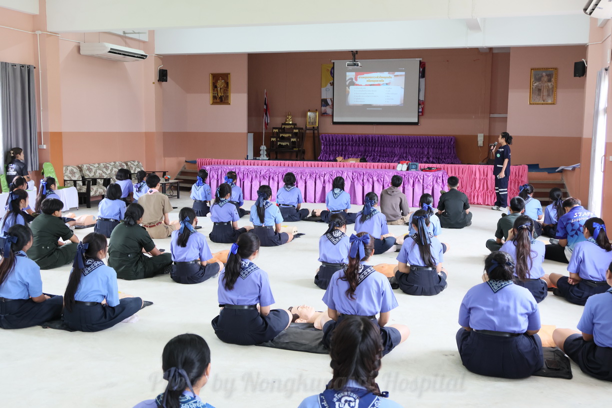 วันที่ 1 กรกฎาคม 2568 เวลา 09.00 น. นายแพทย์สัญญา สุปัญญาบุตร ผู้อำนวยการโรงพยาบาลหนองกุงศรี มอบหมายให้ นางมนต์รัตน์ ภูกองชัย หัวหน้ากลุ่มการพยาบาล โรงพยาบาลหนองกุงศรี เป็นผู้แทนเข้าร่วมเปิดการประชุมเชิงปฏิบัติการ "ให้ความรู้และเสริมสร้างทักษะการทำ CPR ในโรงเรียน ปี 2568" ซึ่งจัดโดยงานอุบัติเหตุฉุกเฉินและนิติเวช โ รงพยาบาลหนองกุงศรี การประชุมฯ ครั้งนี้มีวัตถุประสงค์เพื่อให้ความรู้ความเข้าใจเกี่ยวกับการช่วยฟื้นคืนชีพขั้นพื้นฐาน (CPR) และการใช้เครื่องกระตุกหัวใจไฟฟ้าอัตโนมัติ (AED) แก่นักเรียนระดับมัธยมศึกษาตอนปลาย ชั้น ม.4-6 จำนวน 100 คน แบ่งการอบรมเป็น 2 รุ่น เพื่อให้สามารถปฏิบัติการช่วยชีวิตได้อย่างถูกต้องและทันท่วงทีในสถานการณ์ฉุกเฉินทั้งนี้ ได้รับความร่วมมือจากหน่วยกู้ภัยเจ้าปู่กุงศรี ซึ่งร่วมเป็นวิทยากรในการอบรมเชิงปฏิบัติการ สร้างความรู้และเสริมทักษะให้นักเรียนสามารถเป็น “พลเมืองพร้อมช่วยชีวิต” ได้อย่างมั่นใจ