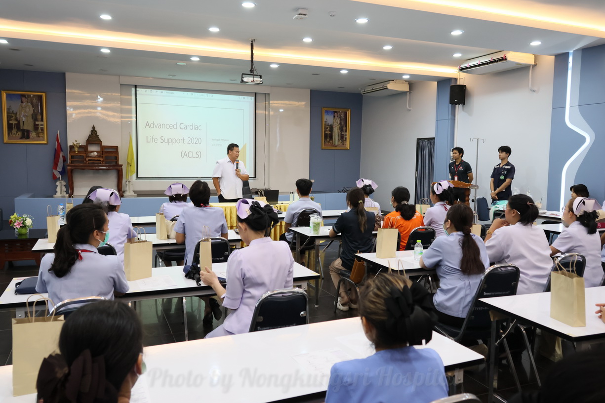 วันพุธที่ 9 กรกฎาคม 2568 นายแพทย์สัญญา สุปัญญาบุตร ผู้อำนวยการโรงพยาบาลหนองกุงศรี พร้อมด้วยบุคลากร คปสอ.หนองกุงศรี ร่วมให้การต้อนรับ นายแพทย์ทวีรัชต์ ศรีกุลวงศ์ นายแพทย์สาธารณสุขจังหวัดกาฬสินธุ์ ให้เกียติเป็นประธานเปิดการอบรม "ช่วยฟื้นคืนชีพขั้นสูง Advanced Cardiac Life Support ( ACLS ) สำหรับเจ้าหน้าที่ คปสอ.หนองกุงศรี" ระหว่างวันที่ 8-9 ก.ค.2568 โดยเป็นการฝึกอบรมสำหรับผู้ให้บริการทางการแพทย์ที่ต้องการเพิ่มพูนความรู้และทักษะในการดูแลผู้ป่วยภาวะฉุกเฉินทางหัวใจและหลอดเลือด รวมถึงภาวะหัวใจหยุดเต้น หลักสูตรนี้ครอบคลุมทั้งภาคทฤษฎีและปฏิบัติจริง โดยเน้นการประเมิน การจัดการ และการช่วยเหลือผู้ป่วยในสถานการณ์ฉุกเฉิน ทั้งนี้ เพื่อเพิ่มพูนความรู้และทักษะในการดูแลผู้ป่วยภาวะฉุกเฉินทางหัวใจและหลอดเลือด, เพิ่มความมั่นใจในการจัดการกับสถานการณ์ฉุกเฉิน, ช่วยให้ผู้ป่วยได้รับการช่วยเหลืออย่างทันท่วงทีและมีประสิทธิภาพ, ช่วยลดอัตราการเสียชีวิตและภาวะแทรกซ้อนจากภาวะฉุกเฉินทางหัวใจ ณ ห้องประชุมศรีดงมูล โรงพยาบาลหนองกุงศรี
