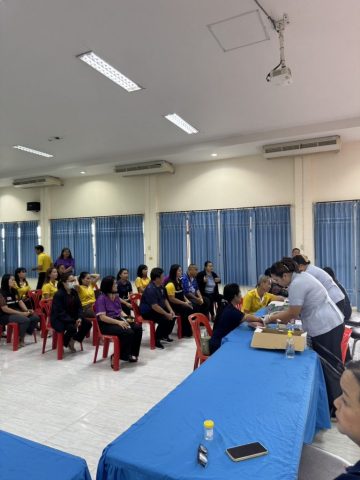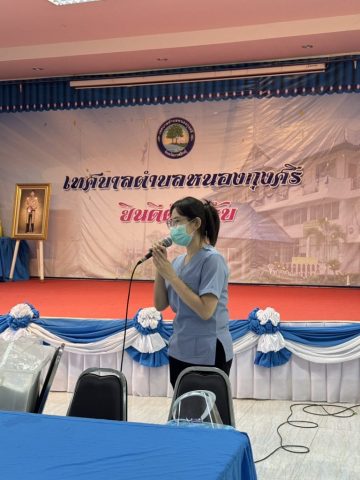 บรรยากาศของกิจกรรมเป็นไปอย่างอบอุ่น โดยมีบุคลากรเทศบาลตำบลหนองกุงศรีเข้าร่วมกิจกรรมอย่างพร้อมเพรียง แสดงให้เห็นถึงความร่วมมือร่วมใจในการส่งเสริมสุขภาพและการดูแลกันในระดับองค์กรอย่างมีประสิทธิภาพ.