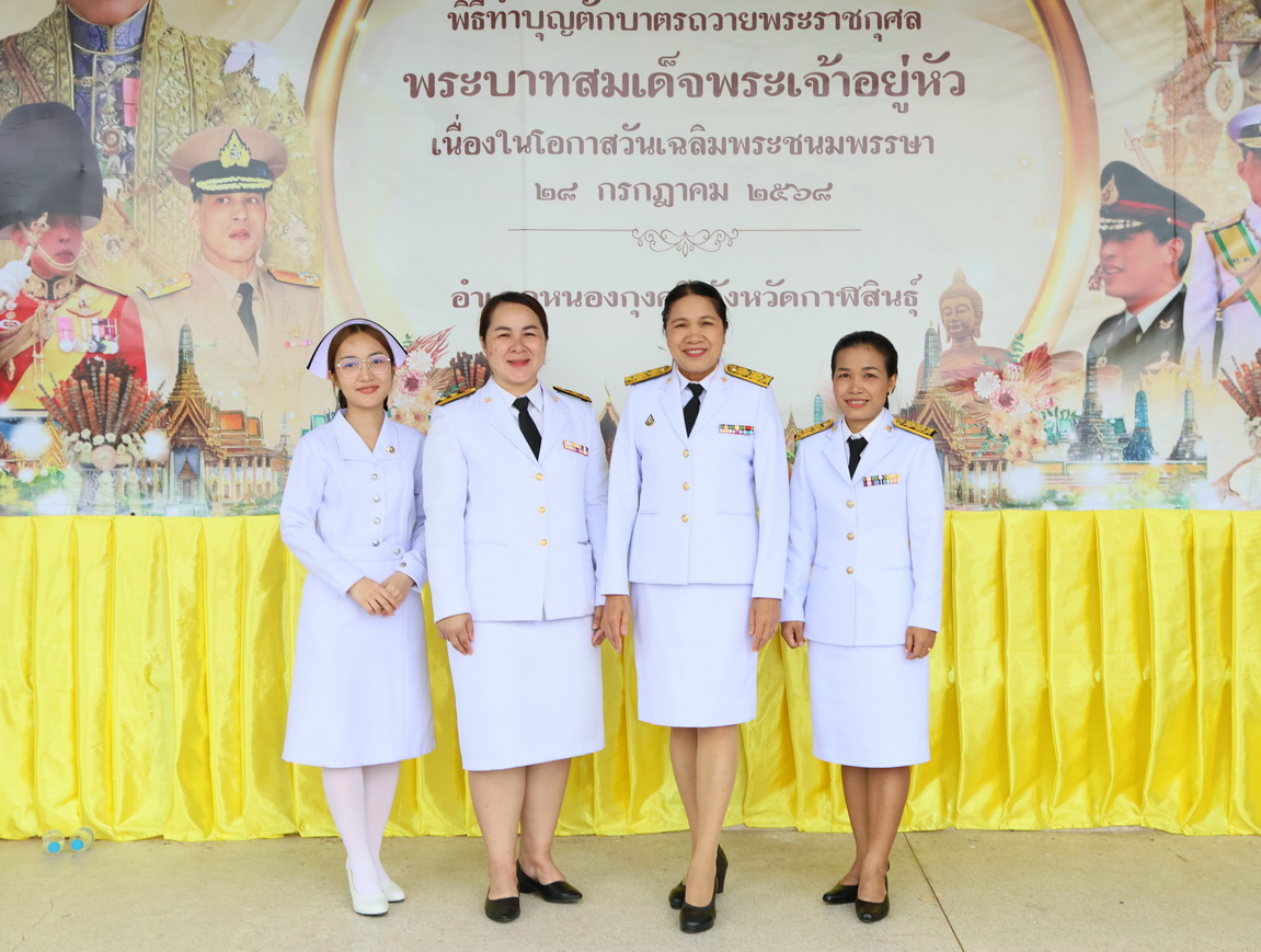 วันที่ 28 กรกฎาคม 2568 นายแพทย์สัญญา สุปัญญาบุตร ผู้อำนวยการโรงพยาบาลหนองกุงศรี พร้อมด้วยบุคลากรโรงพยาบาลหนองกุงศรี ร่วมพิธีทำบุญตักบาตรถวายพระราชกุศล พิธีถวายเครื่องราชสักการะและวางพานพุ่ม พิธีจุดเทียนชัยถวายพระพร และพิธีถวายสัตย์ปฏิญาณเพื่อเป็นข้าราชการที่ดีและพลังของแผ่นดิน เนื่องในโอกาสวันเฉลิมพระชนมพรรษาพระบาทสมเด็จพระเจ้าอยู่หัว 28 กรกฎาคม 2568 โดยมีนายจารุวัตร ภูแก้ว นายอำเภอหนองกุงศรี เป็นประธานในพิธี นำส่วนราชการ องค์กรปกครองส่วนท้องถิ่น และประชาชนทุกภาคส่วน ประกอบพิธีถวายสัตย์ปฏิญาณเพื่อเป็นข้าราชการที่ดีและพลังแผ่นดิน กล่าวถวายราชสดุดีเฉลิมพระเกียรติ พร้อมขับร้องเพลงสดุดีจอมราชา เบื้องหน้าพระบรมฉายาลักษณ์พระบาทสมเด็จพระเจ้าอยู่หัว
