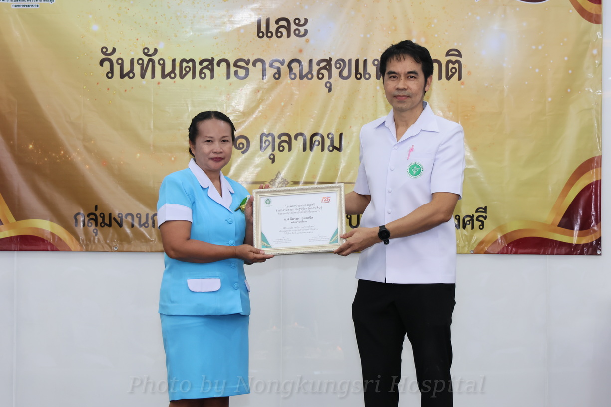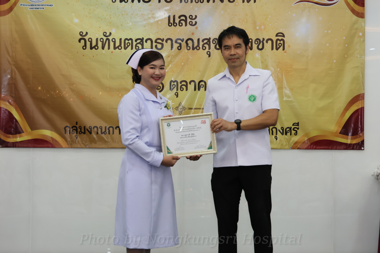 วันที่ 17 ตุลาคม 2568 เวลา 13.00 น. นายแพทย์สัญญา สุปัญญาบุตร ผู้อำนวยการโรงพยาบาลหนองกุงศรี เป็นประธานในพิธีเปิดกิจกรรม “วันพยาบาลแห่งชาติและวันทันตสาธารณสุขแห่งชาติ ประจำปี 2568” โดยมี นางมนต์รัตน์ ภูกองชัย หัวหน้ากลุ่มงานการพยาบาล เป็นผู้กล่าวรายงาน