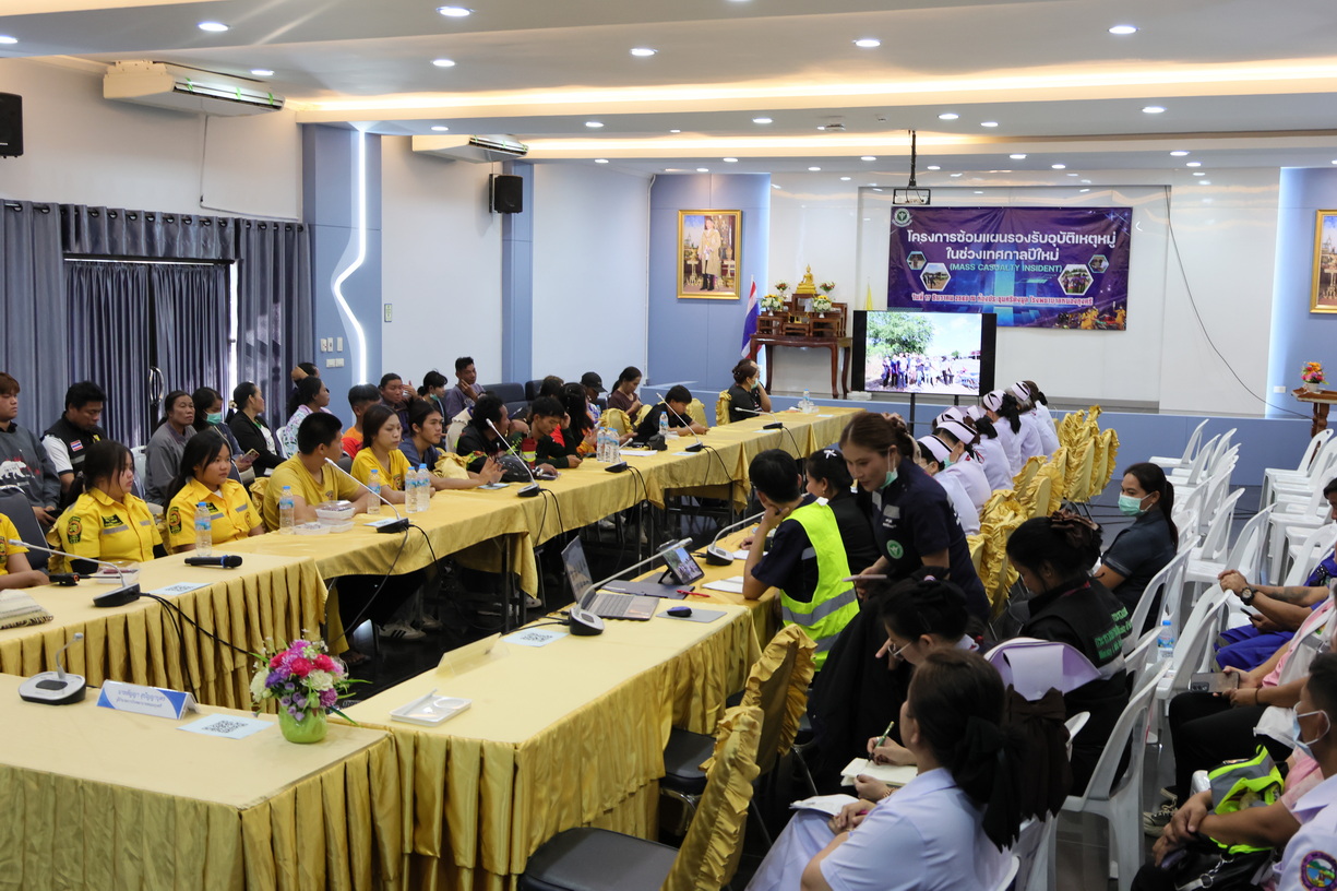กิจกรรมในครั้งนี้มีวัตถุประสงค์เพื่อเตรียมความพร้อมบุคลากรทางการแพทย์ในการรับมือสถานการณ์ฉุกเฉินที่มีผู้บาดเจ็บจำนวนมาก โดยได้รับเกียรติจาก นายแพทย์พลกฤษณ์ ศรีวุฒิชาญ นายแพทย์ปฏิบัติการ เป็นวิทยากรให้ความรู้และแนะนำแนวทางการปฏิบัติงาน พร้อมทั้งนำทีมเข้าสู่การซ้อมแผนในสถานการณ์จำลองเต็มรูปแบบ (Full-Scale Exercise)