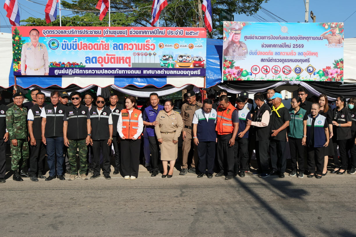 โรงพยาบาลหนองกุงศรี ร่วมเปิดจุดบริการประชาชนและศูนย์อำนวยความสะดวกทางถนน มุ่งเป้าลดอุบัติเหตุและสร้างความปลอดภัยในช่วงเทศกาลปีใหม่
