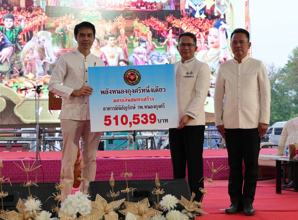 ผู้ว่าฯ กาฬสินธุ์ เป็นตัวแทนชาวหนองกุงศรี มอบเงินสมทบทุนสร้าง “มินิธัญญารักษ์” ในงานบุญมหาชาติเฉลิมพระเกียรติฯ
