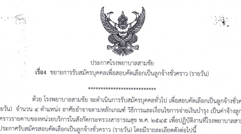 Read Moreประกาศโรงพยาบาลสามชัยเรื่อง รายชื่อผู้มีสิทธิสอบตัดเลือก เลขประจำตัวสอบ และระเบียบการปฏิบัติของผู้สอบลูกจ้างชั่วคราว (รายวัน)ตามประกาศโรงพยาบาลสามชัย ลงวันที่ 17 นิถุนายน ๒๕๖๘ เรื่อง การรับสมัครบุคคลเพื่อเป็นลูกจ้างชั่วคราว (รวม) จำนวน 4 ตำแหน่ง โดยเปิดรับสมัคร ตั้งแต่วันที่ 18-25 มิถุนายน 2568