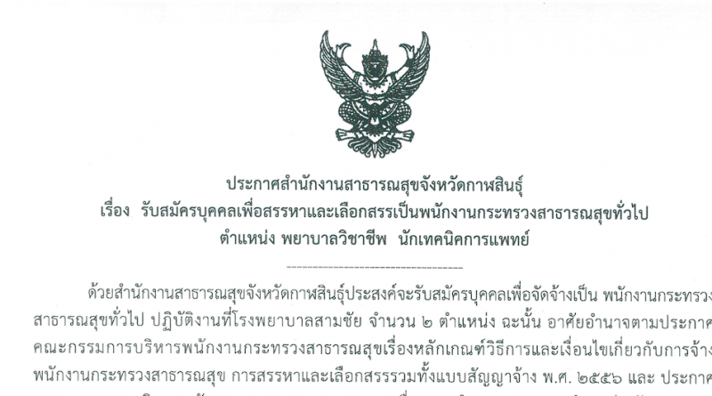 ประกาศสำนักงานสาธารณสุขจังหวัดกาฬสินธุ์