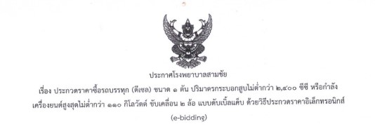ประกาศโรงพยาบาลสามชัย เรื่องประกวดราคาคลิกที่นี่