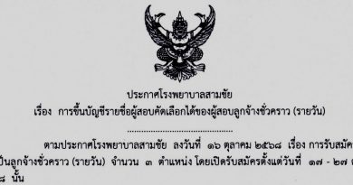ประกาศโรงพยาบาลสามชัยเรื่อง การขึ้นบัญชีรายชื่อผู้สอบคัดเลือกได้ของผู้สอบลูกจ้างชั่วคราว (รายวัน)