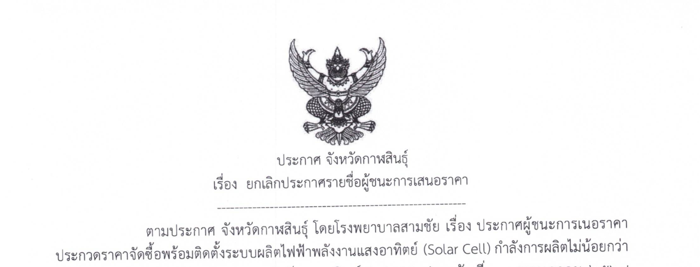 การจัดซื้อจัดจ้าง ประกาศ จังหวัดกาฬสินธุ์เรื่อง ยกเลิกประกาศรายชื่อผู้ชนะการเสนอราคา June 9, 2025 IT-28791 ดาวน์โหลด