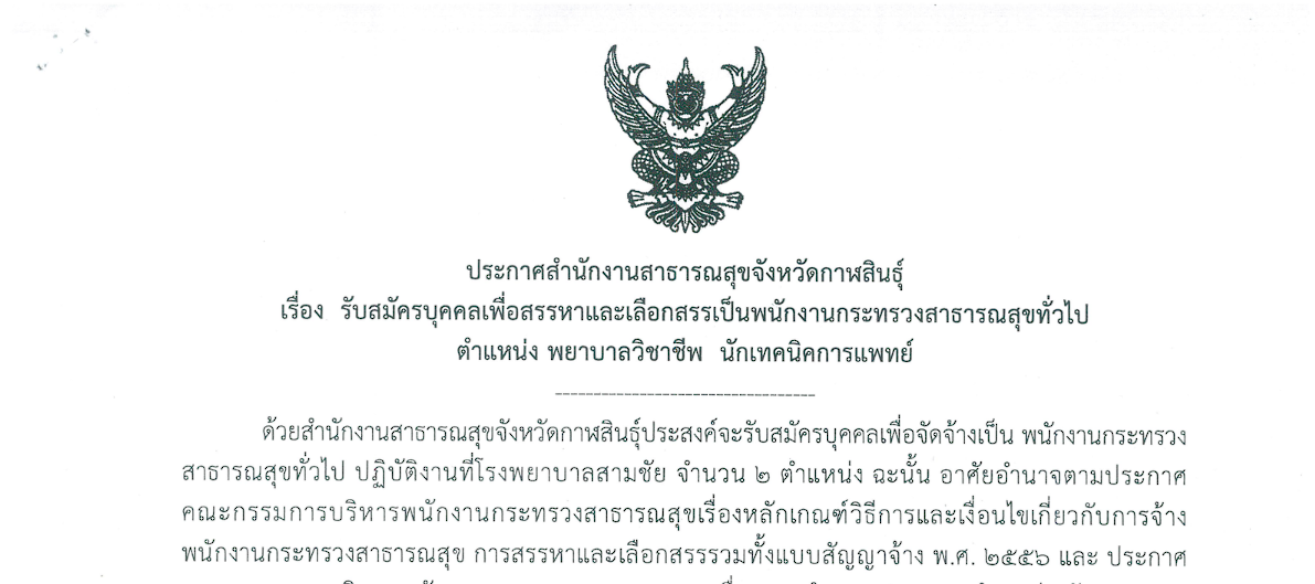ข่าวสมัครงาน ประกาศสำนักงานสาธารณสุขจังหวัดกาฬสินธุ์ เรื่อง รับสมัครบุคคลเพื่อสรรหาและเลือกสรรเป็นพนักงานกระทรวงสาธารสุขทั่วไป ตำแหน่ง พยาบาลวิชาชีพ นักเทคนิคการแพทย์ June 19, 2025 IT-28791 ดาวน์โหลดเอกสาร