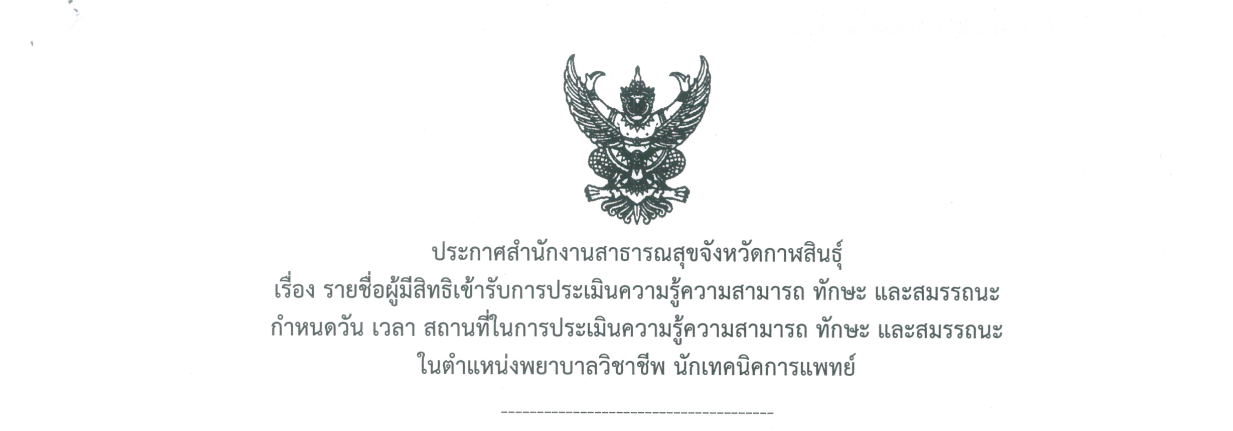 ประกาศสำนักงานสาธารณสุขจังหวัดกาฬสินธุ์