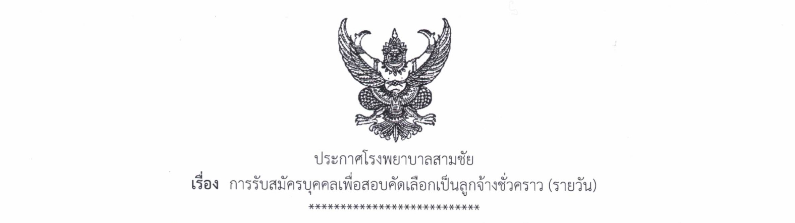 ประกาศโรงพยาบาลสามชัย เรื่อง การรับสมัครบุคคลเพื่อสอบคัดเลือกเป็นลูกจ้างชั่วคราว (รายวัน)