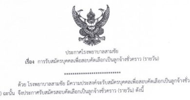 ประกาศโรงพยาบาลสามชัยเรื่อง การรับสมัครบุคคลเพื่อสอบคัดเลือกเป็นลูกจ้างชั่วคราว (รายวัน)