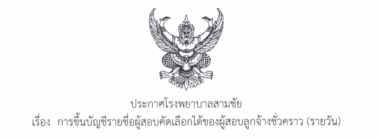 กิจกรรมข่าวสมัครงาน ประกาศโรงพยาบาลสามชัย เรื่อง การขึ้นบัญชีรายชื่อผู้สอบคัดเลือกได้ของผู้สอบลูกจ้างชั่วคราว (รายวัน) January 29, 2026 IT-28791 CCF_000120