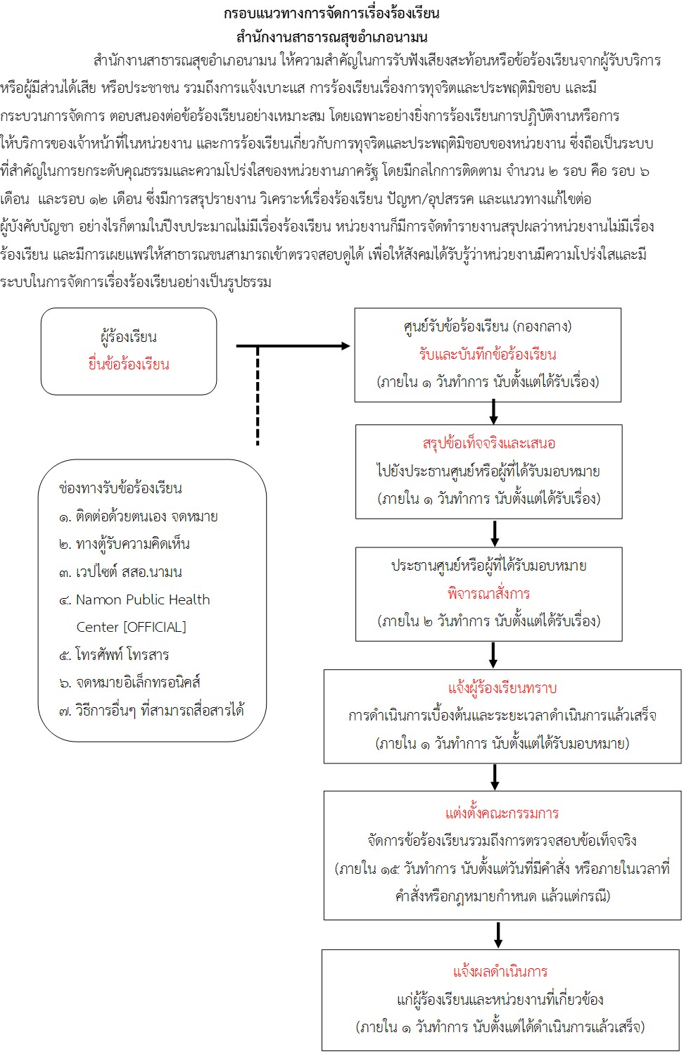 2.ร้องเรียนทาง Facebook สำนักงานสาธารณสุขอำเภอนามน https://www.facebook.com/profile.php?id=61572415572373