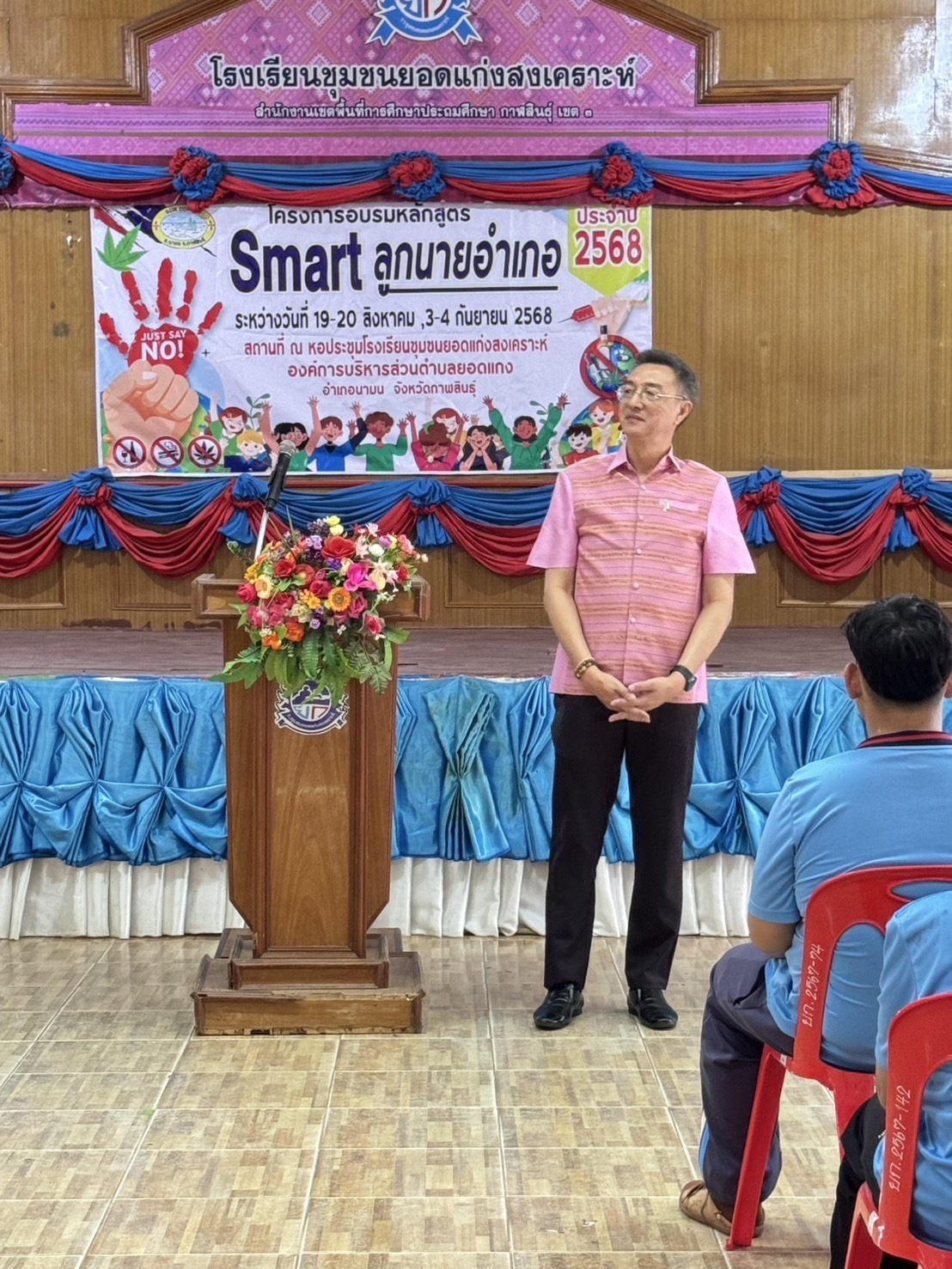 นายภิเด่น พงศ์อุดมสุข นายอำเภอนามน เป็นประธานในพิธีปิดการอบรมโครงการ Smart ลูกนายอำเภอ รุ่นที่ 4 ประจำปี 2568 ณ หอประชุมโรงเรียนชุมชนยอดแก่งสงเคราะห์ ในการปิดการอบรมครั้งนี้ มีหัวหน้าส่วนราชการ นายสุพจน์ แสบงบาล สสอ.นามน ,นางสัจจา ภาวิขำ ผอ.รพ.สต.บ้านโนนศรีสวัสดิ์ ,นายอายุวัฒน์ สุระเสียง ผอ.รพ.สต.บ้านศรีพัฒนา รวมทั้งผู้อำนวยการสถานศึกษาทั้ง 2 แห่ง ประกอบด้วยโรงเรียนหนองหญ้าปล้อง และโรงเรียนชุมชนยอดแก่งสงเคราะห์,เจ้าหน้าที่จากหน่วยงาน อบต.ยอดแกง,กำนันตำบลยอดแกงพร้อมกลุ่มผู้นำชุมชน เข้าร่วมในพิธีปิดในครั้งนี้
