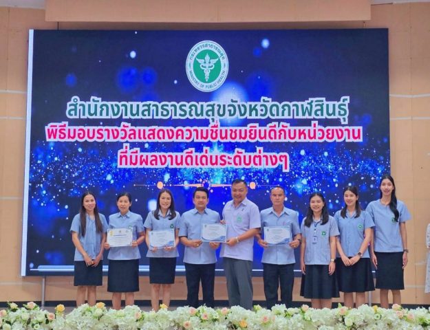 เวลา 13.30 น.สสจ.กาฬสินธุ์ จัดพิธีมอบรางวัลแสดงความชื่นชมยินดีกับหน่วยงานองค์กรที่มีผลงานดีเด่นระดับต่างๆ ปีงบประมาณ 2569