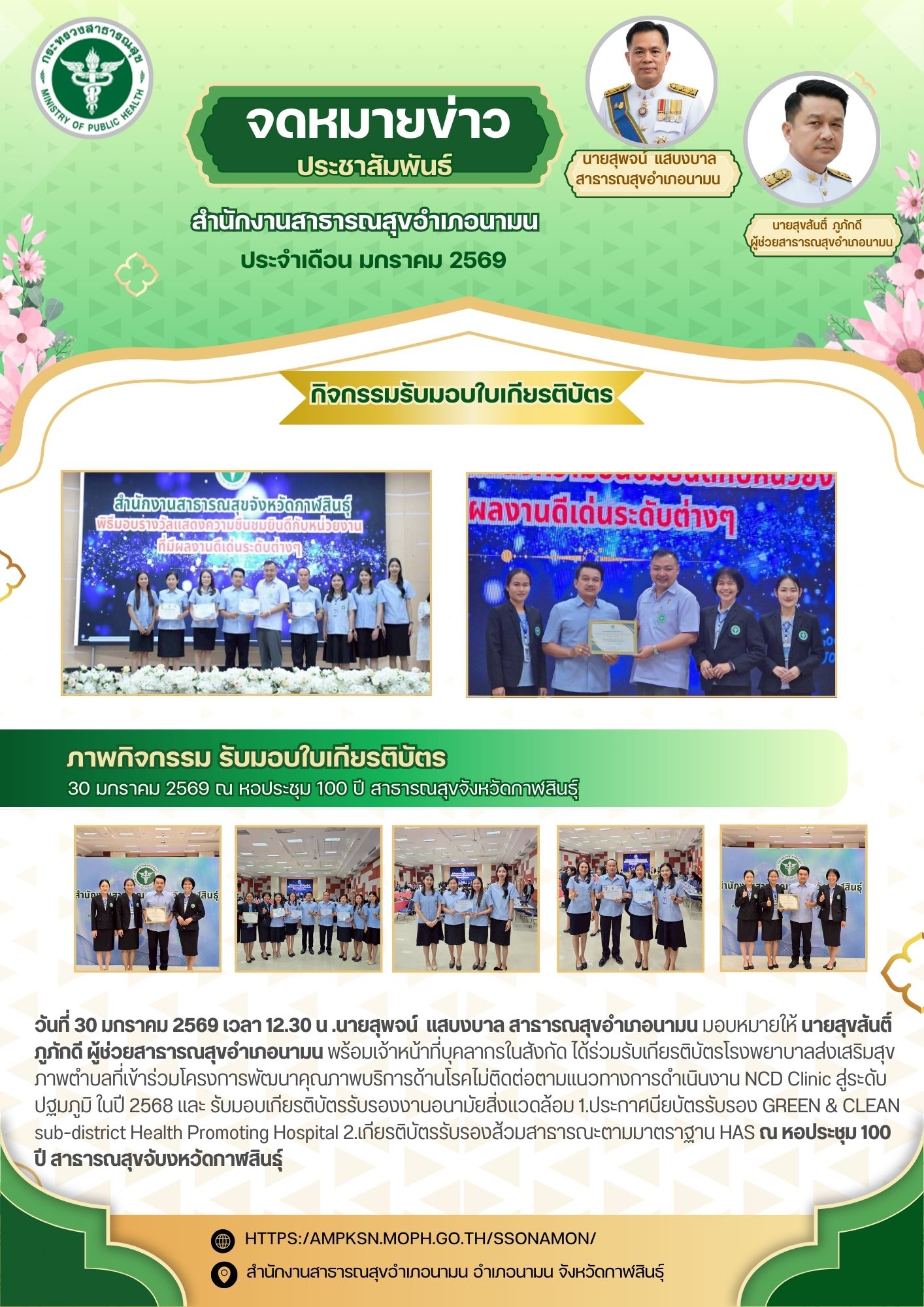 2. มอบเกียรติบัตรผ่านการรับรอง GREEN & CLEAN Sub-district Health Promoting Hospital (GCSh) และเกียรติบัตรรับรอง “ส้วมสะอาด ได้มาตรฐาน HAS” ประจำปีงบประมาณ พ.ศ. 2568 อำเภอนามน