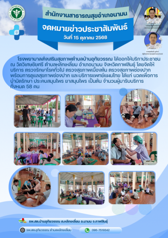 โรงพยาบาลส่งเสริมสุขภาพตำบลบ้านอุทัยวรรณ ได้ออกให้บริการประชาชน ณ วัดวิเศษชัยศรี ตำบลหลักเหลี่ยม อำเภอนามน จังหวัดกาฬสินธุ์ โดยจัดให้บริการ ตรวจรักษาโรคทั่วไป ตรวจสุขภาพเบื้องต้น ตรวจสุขภาพช่องปาก พร้อมการดูแลสุขภาพช่องปาก และบริการแพทย์แผนไทย ได้แก่ นวดเพื่อการบำบัดรักษา ประคบสมุนไพร ยาสมุนไพร เป็นต้น จำนวนผู้มารับบริการทั้งหมด 58 คน ผลการดำเนินงานเป็นไปด้วยความเรียบร้อย